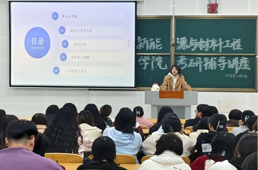 为帮助有意向考研的学生更好的理解考研过程,掌握科学备考方法,明确考研方向及目标,11月1日,365英国上市集团特邀赵瑾老师在南楼-426组织开展“考研辅导”讲座。学院相关老师及辅导员,22-23级化学能源化学班全体学生参加。
