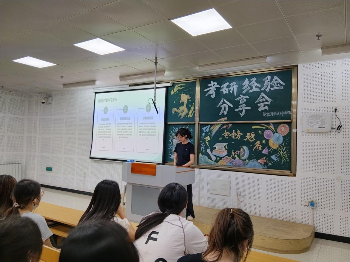活动特邀2025届五名考入知名高校的学生代表,聚焦考研院校选择、复习规划、应试技巧等考研核心问题,通过案例解析、互动答疑与经验分享,为百余名有考研意向的学弟学妹指明方向,提振信心。在本次分享中,优秀毕业生代表们结合自身备考经历倾囊相授。化学专业王栋考入山西师范大学,他系统拆解备考资源,强调了学科复习要合理分配时间,薄弱科目需每日制定小目标,避免偏科影响总分;化学专业潘晓宇考入山西师范大学,她建议要密切关注目标院校的招生政策变化,根据自身复习进度和实际情况及时调整报考策略,避免盲目跟风;化学专业王梓珊考入东北农业大学,她分享了缓解焦虑的冥想方法和应对倦怠的奖励机制,为考研学子提供情绪管理方法;化学专业郭雨欣详细介绍了考研重要时间点,讲解了如何结合自身情况选择复习资料,强调了定期复盘的重要性,成功上岸山西师范大学;化学专业高艺轩考入南京林业大学,她聚焦复试与面试,提到复试时要注重与导师的专业沟通,要在面试中展现清晰的逻辑思维。这些经验为考研学子提供了宝贵的经验和建议,同时增强了学子们的信心和决心。